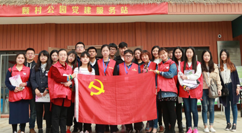 2017年上海樱花节期间,宝山区党员服务中心在顾村公园设置了党建服务站,积极组织宝山区机关单位党员和街道社区党员参与樱花节志愿服务工作。4月8日,临时党支部走进顾村公园党建服务站开展学习交流活动,过了一次有意义的联合组织生活会。上海大学学生志愿者和党建服务站党员志愿者开展了相互佩戴党徽仪式活动。党徽熠熠,为人民服务的宗旨拉近了来自不同领域的党员志愿者。同学们邀请来自顾村菊泉二居党支部的老党员高凤仙同志讲述了自己志愿服务的故事。老党员身上纯洁的党性观念令在场的学生党员深受感动,同学们均表示向优秀的老党员看齐,不忘初心,终身服务。党建服务站的负责人龚颖杰同志表示,党建服务站的党员志愿者与上海大学学生志愿者,同志同谋,同岗同责,有责任有义务践行党的宗旨,为广大游客提供志愿服务。临时党支部党员纷纷表示要向社会组织基层党员学习,传承和发扬社区老党员志愿服务的精神,带领广大学生志愿者更好地为樱花节提供志愿服务。